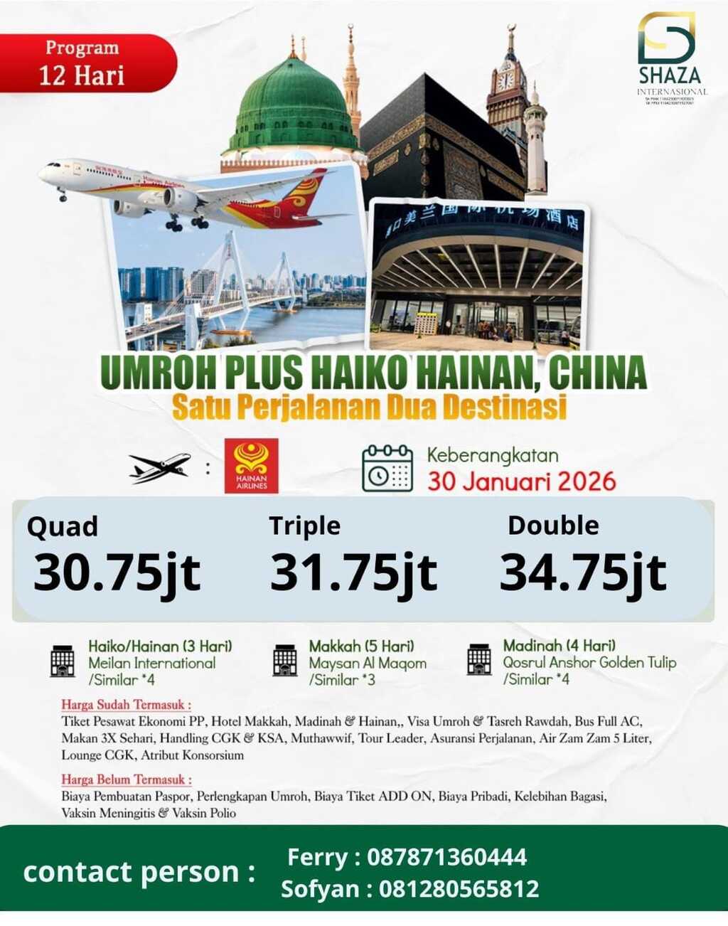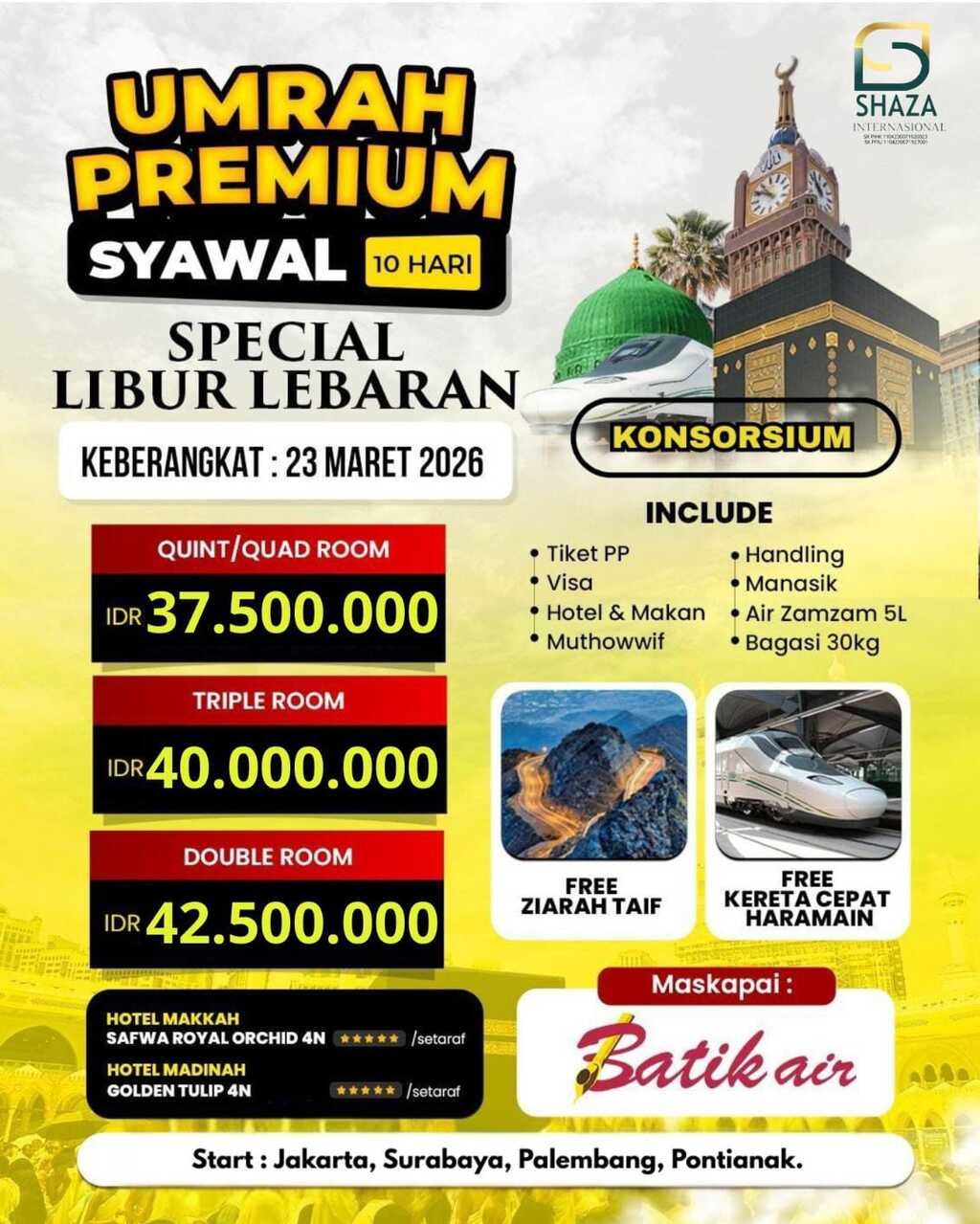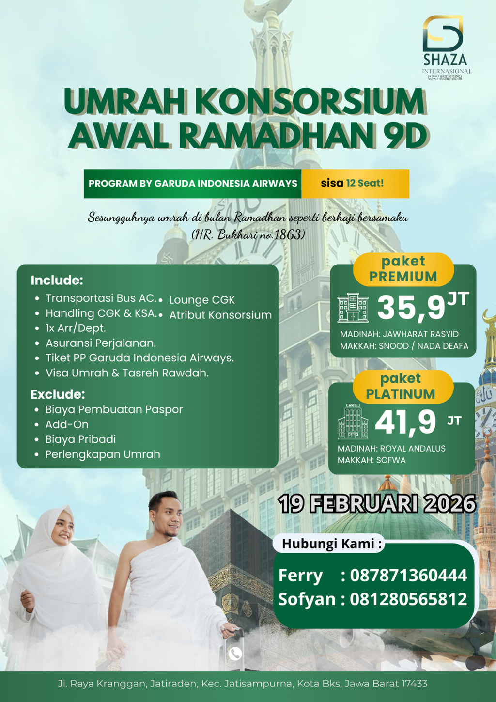 Shaza Internasional adalah agen perjalanan terkemuka yang berfokus pada layanan Umroh, Haji, dan Tour Muslim. Kami berkomitmen memberikan perjalanan yang lancar dan memperkaya pengalaman spiritual Anda. Bergabunglah bersama kami untuk menjadikan momen ibadah Anda lebih bermakna.